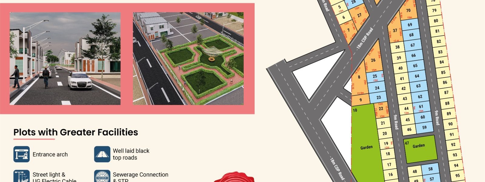 With additional facilities like an entrance arch, precast compound wall, rainwater harvesting, and efficient storm water drainage, the layout is designed for long-term sustainability and convenience. Its strategic location near major roads and developing areas adds great value and future growth potential.